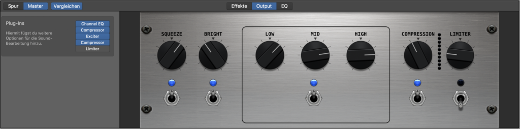 Die Grundelemente von Garageband sehen folgend aus: