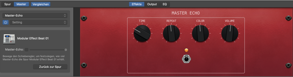 Das Master-Echo erzeugt mehrere Sounds, die zeitverzögert schwächer ein zweites Mal gespielt werden.